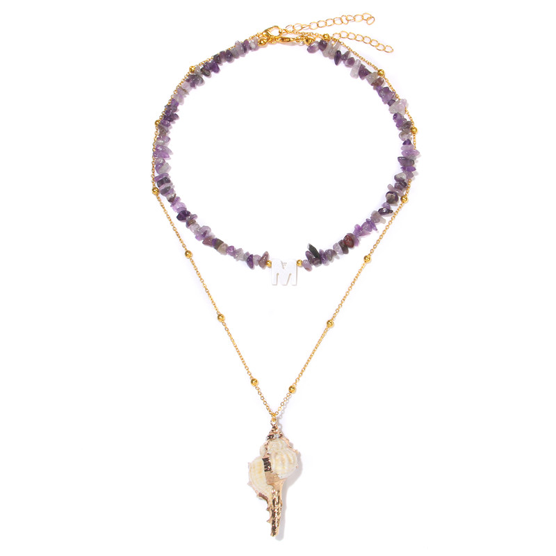 Bohemia Amethysts Necklaces For Women Men Gold Color Chain Conch Shell 26 English Letters Pendant Necklaces Jewelry Gift Amethyst-L-35cm – Sumsfashion